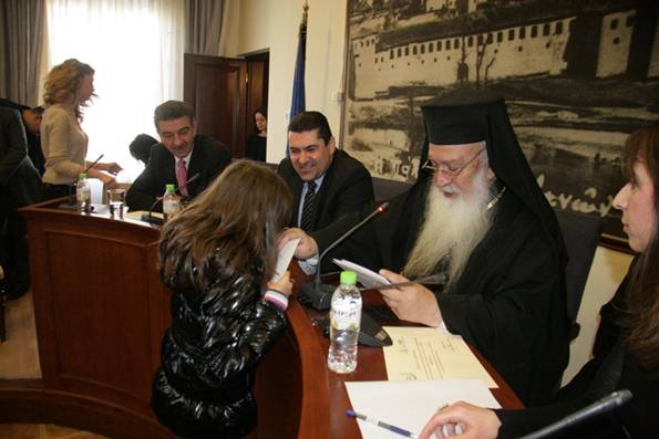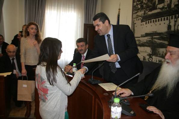 Ο Δήμαρχος Γρεβενών κ. Δημοσθένης Κουπτσίδης στο σύντομο χαιρετισμό του συνεχάρη το Σεβασμιώτατο Μητροπολίτη Γρεβενών και Πρόεδρο των Κοινωφελών Ιδρυμάτων «Κωνσταντίνου και Μαργαρίτη Βρέντζιου» και «Νικολάου και Κούκας Κωνσταντινίδη» κ.κ. Σέργιο για τη συνέχιση της παράδοσης βράβευσης των μαθητών και δήλωσε ότι τόσο ο Δήμος Γρεβενών όσο και η ΔΕΚΕΓ θα συνεχίσουν την παράδοση αυτή, παρά τις οικονομικές δυσκολίες που υπάρχουν.
