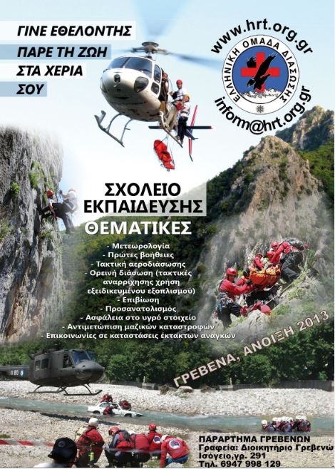 Το π. Γρεβενών της Ελληνικής Ομάδας Διάσωσης ξεκινά ΣΧΟΛΕΙΟ ΕΚΠΑΙΔΕΥΣΗΣ ΒΑΣΙΚΩΝ ΓΝΩΣΕΩΝ ΔΙΑΣΩΣΗΣ που θα υλοποιηθεί στα Γρεβενά.