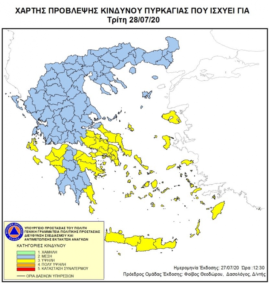 Ο Δήμος Γρεβενών ενημερώνει τους δημότες ότι σύμφωνα με το χάρτη πρόβλεψης κινδύνου πυρκαγιάς, που εκδίδει καθημερινά η Γενική Γραμματεία Πολιτικής Προστασίας, για αύριο Τρίτη 28 Ιουλίου 2020, προβλέπεται μέσος κίνδυνος πυρκαγιάς (κατηγορία κινδύνου 2) σε όλες τις περιοχές της Περιφερειακής Ενότητας Γρεβενών.