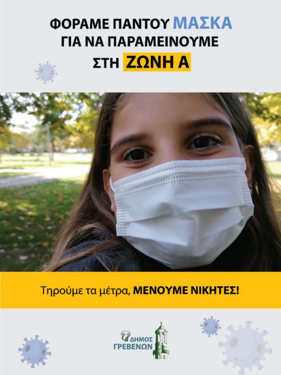 Στο πλαίσιο της συνεχιζόμενης ενημερωτικής καμπάνιας του Δήμου Γρεβενών με σκοπό την άμεση πληροφόρηση και την περαιτέρω ευαισθητοποίηση των συνδημοτών μας για την πιστή εφαρμογή των νέων και αυστηρότερων προληπτικών μέτρων για την ανάσχεση του κορονοϊού, η Δημοτική Αρχή προχώρησε στη δημιουργία και δημοσιοποίηση της τέταρτης κατά σειρά διαδικτυακής της αφίσας υπό τη μορφή και πάλι του κοινωνικού μηνύματος.
