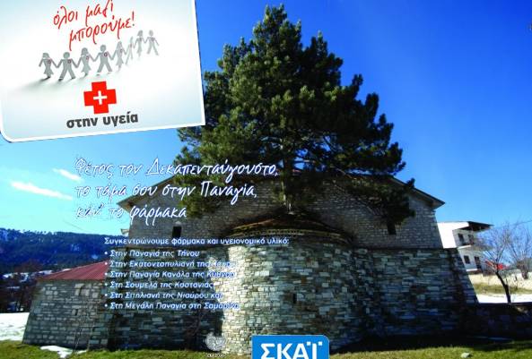 Στο πλαίσιο της πρωτοβουλίας του ΣΚΑΪ «ΟΛΟΙ ΜΑΖΙ ΜΠΟΡΟΥΜΕ και στην ΥΓΕΙΑ», και με την συμπαράσταση και την υποστήριξη  του Δήμου Γρεβενών (Τοπική Ενότητα Σαμαρίνας) και του Φαρμακευτικού Συλλόγου Γρεβενών συγκεντρώνουμε φάρμακα και υγειονομικό υλικό στη Μεγάλη Παναγιά στη Σαμαρίνα την Παρασκευή 16 Αυγούστου, το τάμα μας στην Παναγία, το κάνουμε φάρμακα....