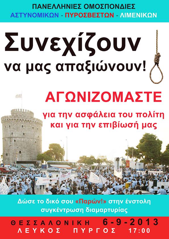 Την Παρασκευή 06 Σεπτέμβρη 2013 και ώρα 17:00 στη Θεσσαλονίκη καλείσαι στην ένστολη πανελλαδική διαμαρτυρία της Π.Ο.ΑΣ.Υ., όπου θα ανοίξουμε τον χορό των κινητοποιήσεων των εργαζομένων στην 78η Δ.Ε.Θ. αντιδρώντας ...