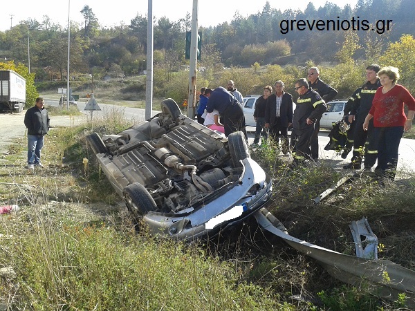 ανατραπεί, όπως χαρακτηριστικά βλέπετε στις αποκαλυπτικές φωτογραφίες. Η οδηγός, κάτοικος Γρεβενών, κατάφερε να απεγκλωβιστεί μόνη της και να βγει με ελαφριά τραύματα. Προληπτικά ωστόσο μεταφέρθηκε στο νοσοκομείο Γρεβενών όπου και διαπιστώθηκε ο ελαφρύς τραυματισμός της.