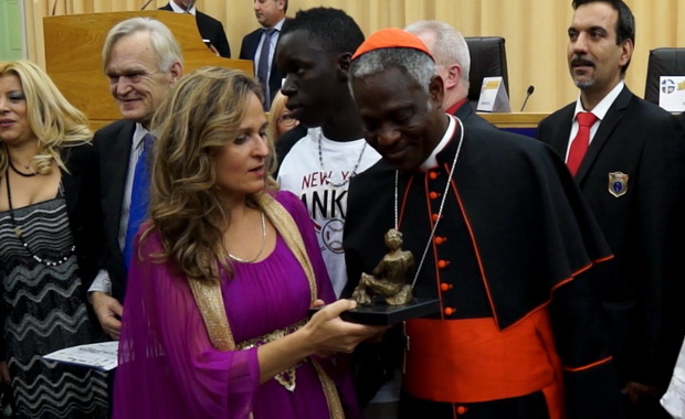 Ο Καρδινάλιος Peter Turkson δέχεται το μπρούτζινο γλυπτό της δημιουργού Δήμητρας Λαμπρέτσα