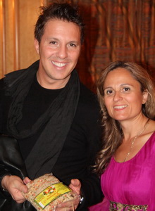 Ο γνωστός τηλεοπτικός αστέρας Savino Zaba και παρουσιαστής των Βραβείων αποδέχεται τα δώρα από τα Γρεβενά με βάση το μανιτάρι από τη Δήμητρα Λαμπρέτσα