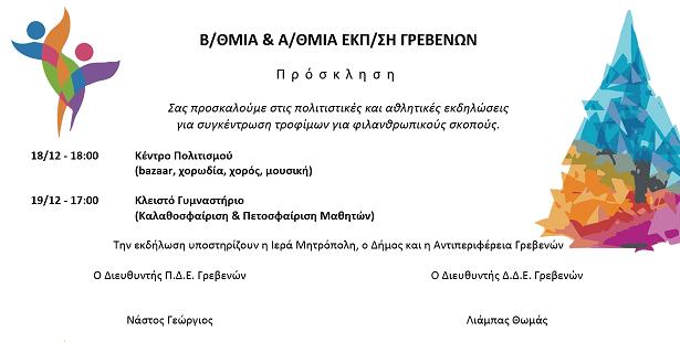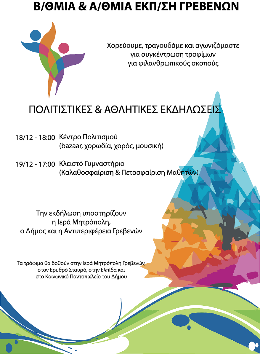 Εθελοντισμού. Στόχος των Εκδηλώσεων είναι η συγκέντρωση τροφίμων τα οποία θα δοθούν στην Ιερά Μητρόπολη Γρεβενών, στον Ερυθρό Σταυρό, στην Ελπίδα και στο Κοινωνικό Παντοπωλείο του Δήμου Γρεβενών για να διατεθούν σε φιλανθρωπικούς σκοπούς.