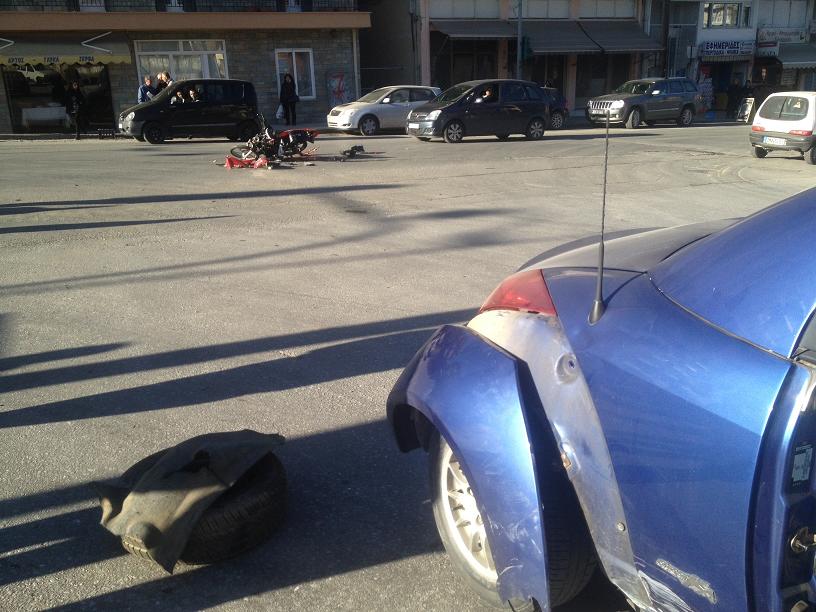 οποίος ευτυχώς φορούσε κράνος, διακομίστηκε με ασθενοφόρο στο νοσοκομείο Γρεβενών.