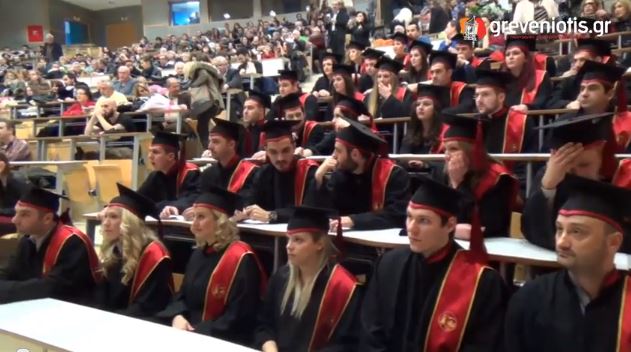 Το αμφιθέατρο του ΤΕΙ κατακλύστηκε από τους συγγενείς και φίλους των αποφοίτων ενώ χαιρετισμό απεύθυνε ο ...