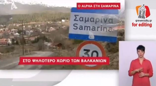 Στο ψηλότερο χωριό, όχι μόνο της Ελλάδας αλλά και των Βαλκανίων, σ την ορεινή Σαμαρίνα βρέθηκε ο τηλεοπτικός σταθμός Alpha με ρεπορτάζ που παρουσίασε στο δελτίο ειδήσεων. Στο αφιέρωμα έγινε παρουσίαση του ορεινού χωριού σαν τόπος προορισμού καθ’ όλη τη διάρκεια του χρόνου, με τον επισκέπτη να έχει τη ευκαιρία να γνωρίσει την ιστορία του μέσα από τα μνημεία που ...