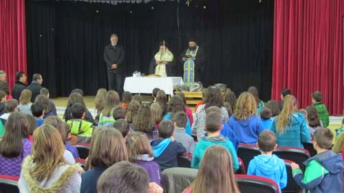 Ο Σεβασμιώτατος κ.κ. Δαβίδ μετά την τελετή της κοπής της πίτας απευθύνθηκε στους μικρούς μαθητές και τους ευχήθηκε να έχουν υγεία και καλή πρόοδο και τους συμβούλεψε ν’ αγαπούν τον τόπο και την πατρίδα τους.
