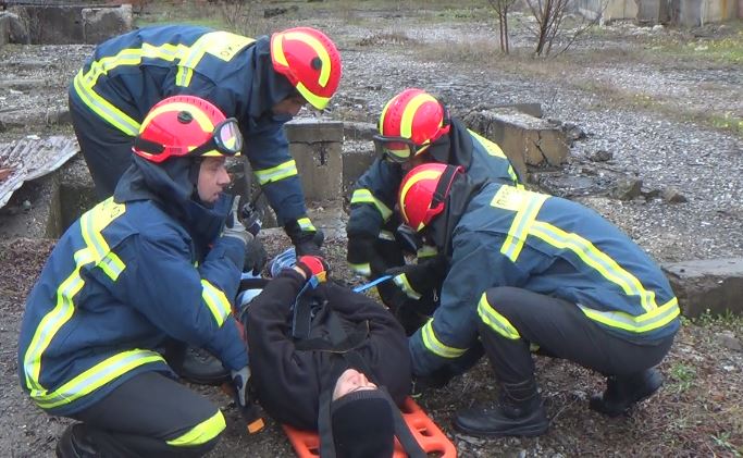 Το σενάριο της άσκησης προέβλεπε την μερική κατάρρευση του κτιρίου λόγω σεισμικής δόνησης και κατά ακολουθία...