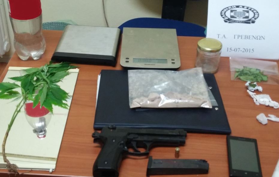 με αστυνομικούς της Ομάδας Πρόληψης και Καταστολής Εγκλήματος (Ο.Π.Κ.Ε.) Γρεβενών και αστυνομικούς του Τμήματος Ασφαλείας Κοζάνης, συνέλαβαν 33χρονο ημεδαπό για διακίνηση και κατοχή ναρκωτικών ουσιών, καλλιέργεια κάνναβης και παράνομη οπλοκατοχή.