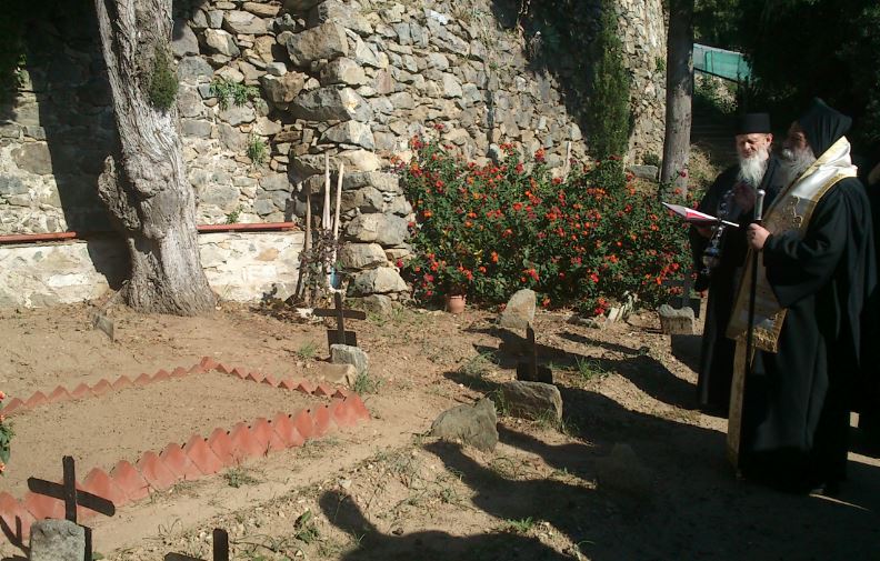 Μετά την επίσημη υποδοχή από τον Καθηγούμενο της Ιεράς Μονής Αγίου Γρηγορίου, Πανοσιολογιώτατο Αρχιμανδρίτη κ. Χριστοφόρο μετά της Συνοδείας αυτού, ο Σεβασμιώτατος τέλεσε τρισάγιο στο μνήμα του μακαριστού ηγουμένου της αυτής Μονής π. Γεωργίου Καψάνη.