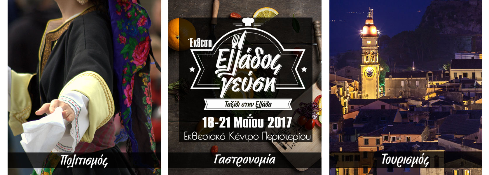 Από τις 18 έως τις 21 Μαΐου 2017 ταξιδεύουμε στις γεύσεις, στον πολιτισμό & τον τουρισμό της Ελλάδας με αφετηρία το Εκθεσιακό Κέντρο Περιστερίου.