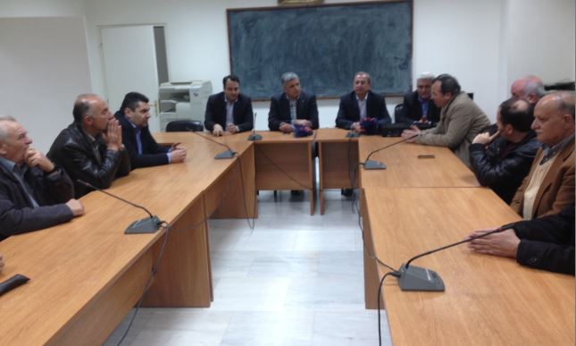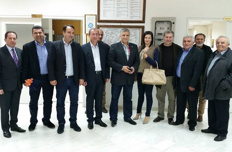 Φωτο του κλιμακίου της ΚΕΔΕ στον ορεινό δήμο Θέρμου με τον πρόεδρο της ΚΕΔΕ Γιώργο Πατούλη, τον Αντιπρόεδρο του εποπτικού συμβουλίου Δημοσθένη Κουπτσίδη, τον Θανάση Παπαθανάση και τον Γραμματέα Βλάσση Σιώμο.