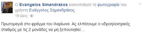Σοβαρές Αιχμές Αφήνει με ανάρτηση του στο Facebook ο Αντιπεριφερειάρχης Γρεβενών Βαγγέλης Σημανδράκος όσον αφορά την Πώληση Λιγνιτικών Μονάδων της ΔΕΗ ο κ. Σημανδράκος με αφορμή επίσκεψη του στο Φράγμα του Ιλαριώνα τόνισε