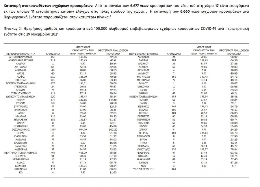 Τα νέα εργαστηριακά επιβεβαιωμένα κρούσματα της νόσου που καταγράφηκαν τις τελευταίες 24 ώρες είναι 6.677 , εκ των οποίων 148 εντοπίστηκαν στην Π.Ε. Κοζάνης, 37 στην Π.Ε. Καστοριάς, 47 στην Π.Ε. Φλώρινας, 24 στην Π.Ε. Γρεβενών.