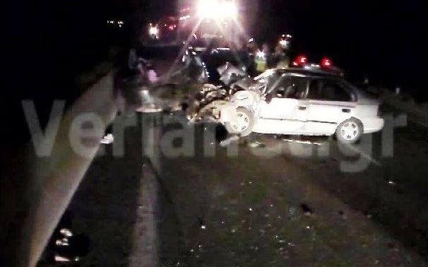 στο διαχωριστικό τοιχείο όπου και ακινητοποιήθηκε. Ο οδηγός και η συνεπιβάτιδα σύζυγός του κατόρθωσαν να βγούνε από το αυτοκίνητο σχεδόν αμέσως κάτι που αποδείχθηκε σωτήριο καθώς δευτερόλεπτα αργότερα άλλο Ι.Χ. Επιβατικό αυτοκίνητο έπεσε στο ήδη ακινητοποιημένο Ι.Χ. Αμέσως μετά τέταρτο Ι.Χ. Στο οποίο επέβαιναν δυο κοπέλες οι οποίες ταξίδευαν από Πτολεμαΐδα προς Θεσσαλονίκη στην προσπάθεια να αποφύγει τα ήδη τρακαρισμένα αυτοκίνητα εκτράπηκε από την πορεία του και αναποδογύρισε. Όπως είπε η οδηγός του αυτοκινήτου, οι δυο κοπέλες κατόρθωσαν να βγουν απο το αυτοκίνητο έρποντας από το παράθυρο του συνοδηγού.