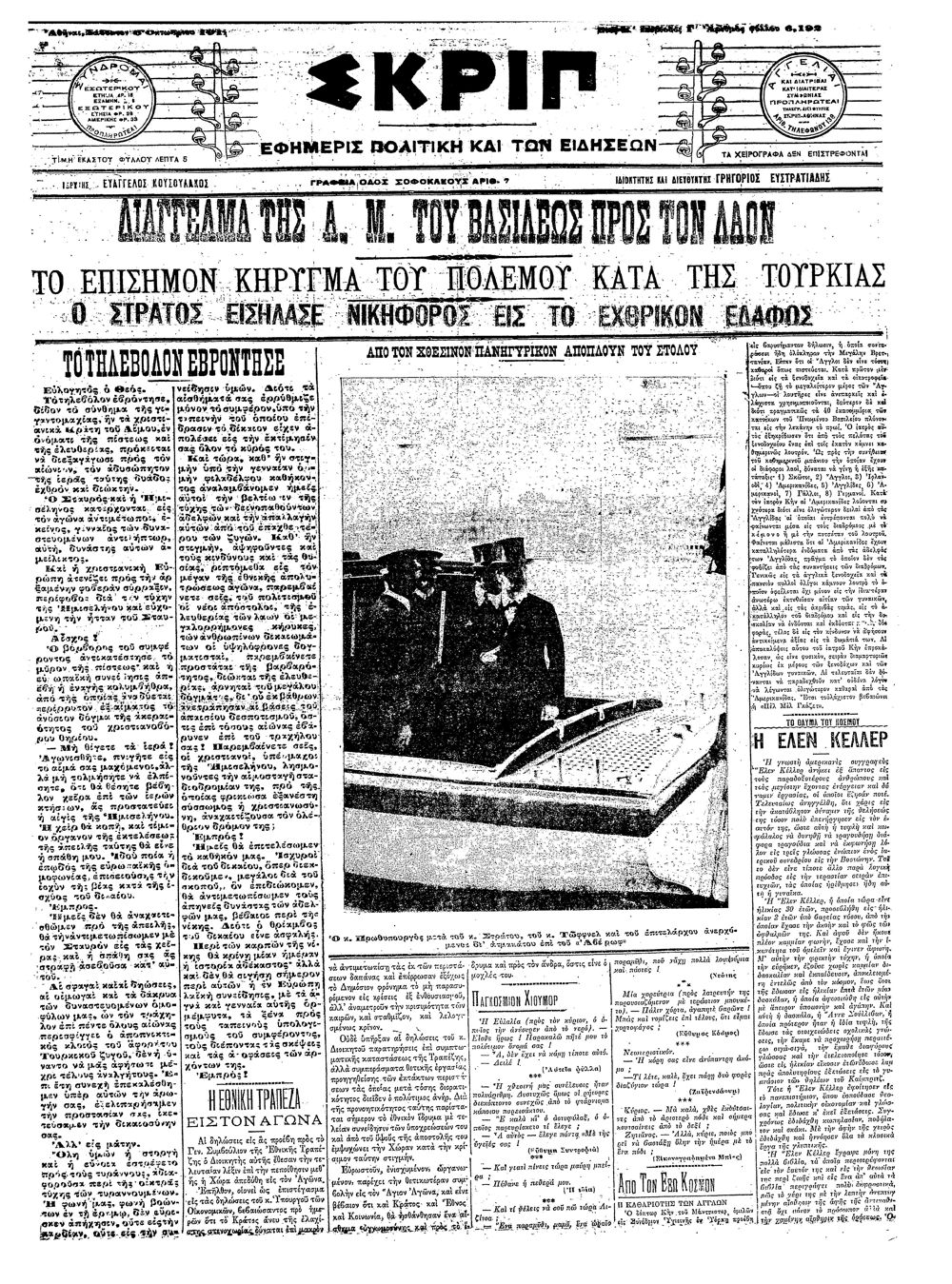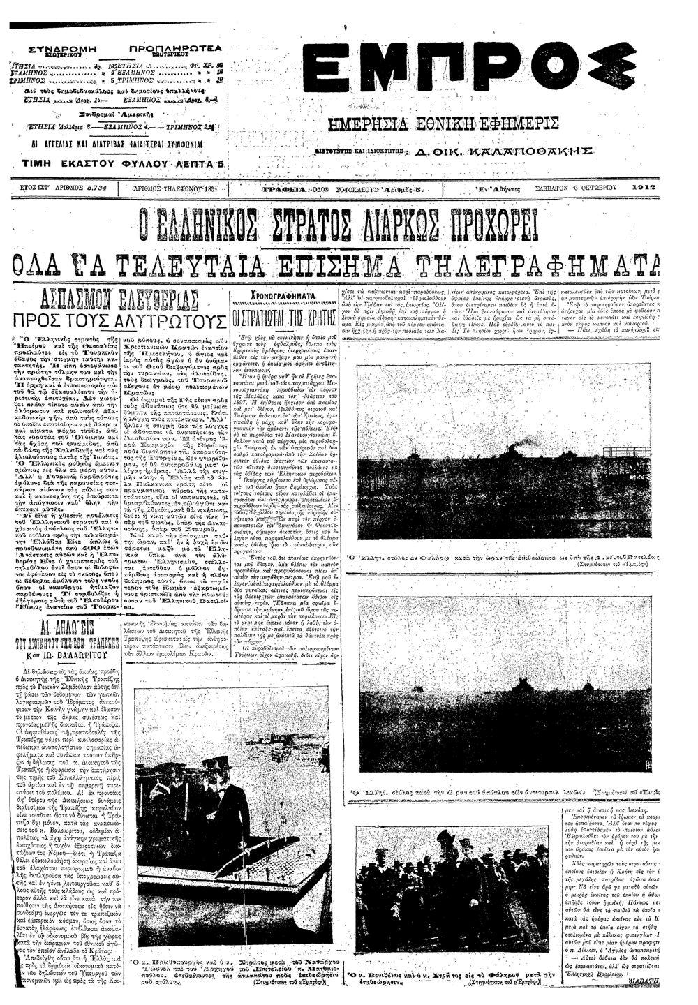 Ένα όνειρο πεντακοσίων χρόνων γίνεται πραγματικότητα τον Οκτώβριο του 1912 μετά την κύρηξη του πολέμου τις 6-10-1912 σε λίγες μέρες η Μακεδονία θα είναι πάλι ελεύθερη θα είναι πάλι Ελληνική. Το βράδυ τις 5-10-1912 ο Ελληνκός στρατός είναι συγκεντρωμένος στην Μόνη Σταγιάδων την επόμενη κυρήσεται ο πόλεμος εναντίον της της Τουρκίας μετά από νικηφόρες μάχες του στρατού και εθελοντών Κρητών περιοχές της Θεσσαλίας και της Μακεδονίας είναι Ελληνικές.
