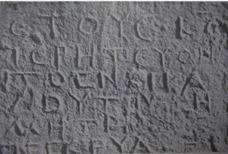 Η τέταρτη επιγραφή και παλαιότερη όλων που βρέθηκε γράφει: