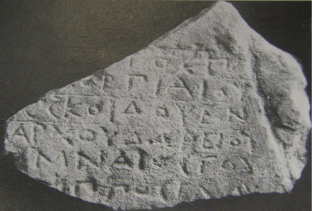 Η επιγραφή αυτή αναφέρει τη λέξη ιερητεύοντος που σημαίνει ότι υπήρχε ιερό και ιερατεύοντας του ιερού πάνω στο λόφο.
