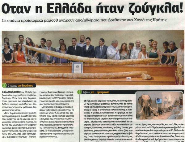 Το 2007 η ανασκαφική ομάδα της κυρίας Τσουκαλά έφερε στο φως απολιθωμένα οστά μαστόδοντα καθώς και τους χαυλιόδοντες του μαστόδοντα μήκους 5 μέτρων και 2 εκατοστών
