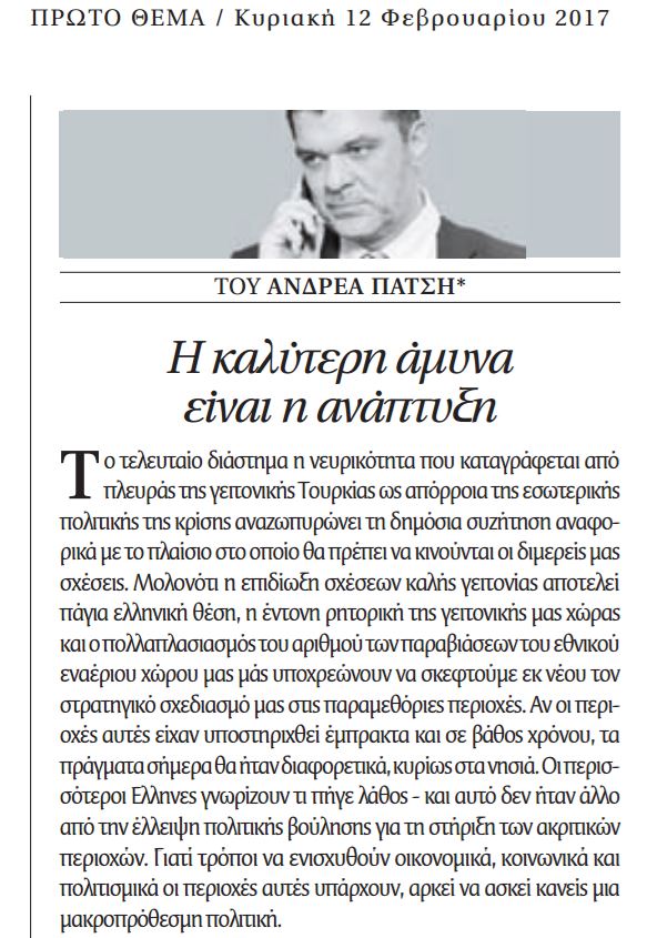 Η καλύτερη άμυνα είναι η ανάπτυξη (του Ανδρέα Πάτση)