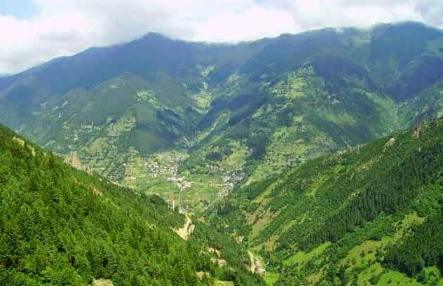 χτισμένο σε έναν κυλάδι απές, γομάτο με τα δέντρα. Σ’ όρος εβρίσκουσαν Αλάτε, Τεζία, Οξέας, Κλερθία, Κάστανα και άλλα πολλά. Είχεν έναν σουρί ορμία τ’ εκατίβεναν τρεχτά σο ποτάμι τ’ εμοίρεζεν το χωριό σα δυο. Λές κι εθέλεναν να προφτάνουν το ποτάμι για ν’ εκατίβαζεν ατά ση θάλασσα. Ούλα τα νερά, ακόμε και του ποταμή, επιησκούσαν. Είχαμε και πολλά ολοκάθαρα, ολοκάτενα πεγάδε το έστεκαμ’ και έπιναμε. Ανάμεσα ‘μουνα συντυχεναμ' Ρωμεικά. Εθάρεναμ’ ούλος ο ντουνιάς μαναχό το χωριό ‘μουνα έν’ και ούλοι οι άνθρωποι Ρομεικά συντυχαίνουν.