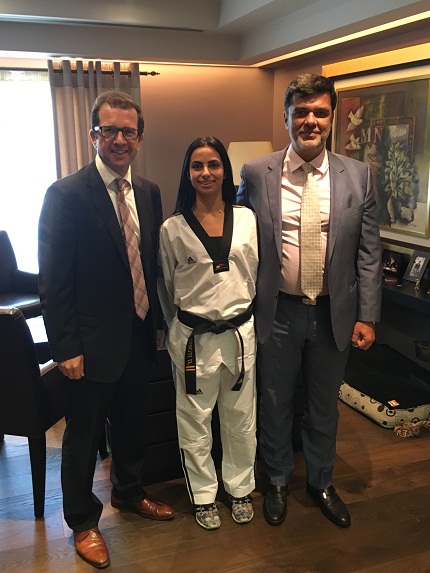 Στη φωτογραφία , η αθλήτρια του Tae kwon Do με τον κ. Ανδρέα Πάτση διευθύνων εταίρος της εταιρίας «Α.Πάτσης και συνεργάτες «μαζί με τον συνεργάτη του κ. Γιώργο Αλέκου.